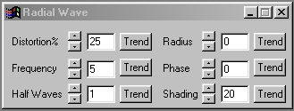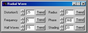 ...this will access the Radial Wave dialog so that you can alter or view the key frame's current settings. You will want to change the following parameters: Half Waves:15, and Phase:360...