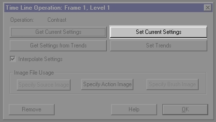 If we were to generate the radial wave with these settings, there would be no movement in the wave. This is due to the fact that frame 20 and frame 30 have the exact same settings at this point, because you have made no changes. We want to create a rippling splash effect, so we will have to change the settings for frame 30. This can be done by double clicking on the radial wave operation icon in frame 30. Now, select the Set Current Settings option...