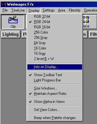 ...this will display the current settings of WinImages F/x, and will also tell you the display mode that the program suggests for your system.