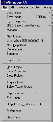 This option will load an image into a view. The Load Image item is operated through a series of submenus that detail a number of recently used (hence the term MRU... Most Recently Used) filesystem locations. This allows you to quickly and easily get to your image files without having to navigate, and re-navigate, and re-re-navigate...