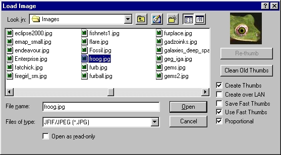 Save Fast Thumbs tells Fx that you want it to create a directory inside each image directory you visit in the dialog, and inside that directory, you want it to store thumbnail images. The benefit of this is significant: the next time you pass over that image in the dialog, instead of reading the image and generating a thumbnail, Fx will get it from the thumbnail subdirectory and it will appear almost instantly. You can, of course, generate a lot of thumbnails this way!