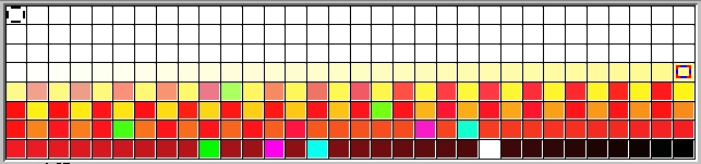 | The palette is set up so that the first 50% is white. This is the color applied during the liftoff and travel phase. Then, at .5, we set up colors that we want the firework to be. We chose red, but there are green fireworks, etc. Then, we threw some purple and blue flashes in there and finally faded the sparks to black. The single bright white color cell provides the terminal "booms" that some fireworks emit, bang-effects to "punctuate" the display. Fun! |