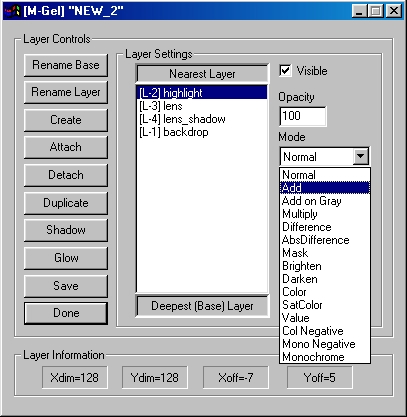 Press OK and the shadow layer will be generated. Now left click on the highlight layer in the layer list, and change it's mode to Add. This will result in the highlight desaturating the gel color, which is also what a bright reflection does. The image below shows how to do this: