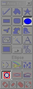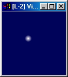 Locate the "highlight" layer and arrange the windows so that you can work on the layer easily. Now pull out a small circle (the tool palette is still set for perfect circles) as shown here; the location isn't critical, but aim about for where the center of the position where you drew the gel lens in the lens layer. If you accidentally get the highlight located over the white backdrop, you won't be able to see it, and that might be confusing: