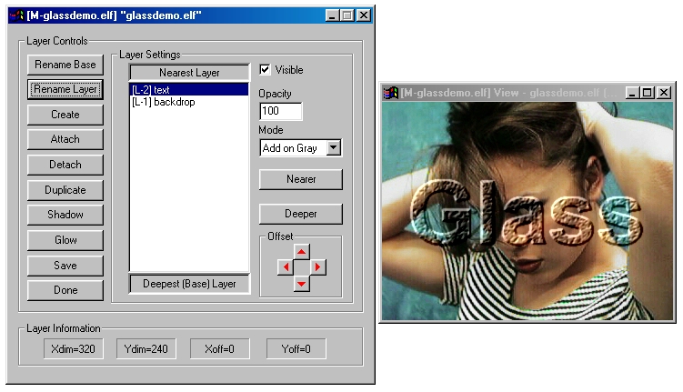 Finally, open the Layers dialog (press L or use the view's context menu Layer item), select the Text layer and change it's Mode to Add on Gray. Here's what you should see: