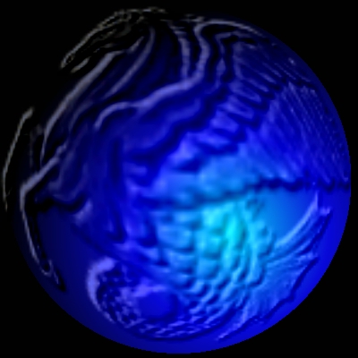 | Next, we use the Geom/Dome operation set to 200 with the Entire Image area select on the relief image. This warps it into a shape that is contoured to match the "ball" look we want. You might or might not want to do this for your image, but to put the image on a ball like the one we've created, it's ideal. | ![]() |
