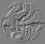 | This is the output of the relief operation, where the background color is exactly 128,128,128 or the middle grey value. That's important - if the background isn't set to 128 128 128, this will not work! You can use any image that produces a suitable relief result... it should look nicely etched. This image came from Greg Tsalidas. | ![]() |