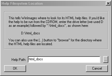 This allows you to select any location on your computer (or network) for the WinImages F/x HTML help files. The path should not have a trailing slash.