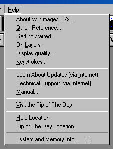 WinImages F/x's operator help system is context sensitive. However, because many Windows dialogs "eat" user keystrokes, in order for the context sensitivity to operate, an image window needs to be open and active (the title bar should be the selected color.)