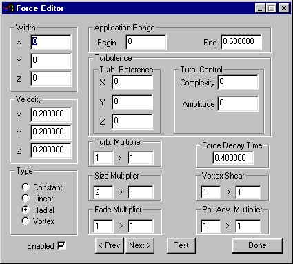 This is the downward force, which we start 50% of the way into a particle's lifetime. That causes the particles to begin, and continue, to fall. Note the size multiplier... operating in the reverse to the previous force. Remember - they factor each other: