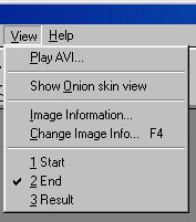The Start and End image Brightness controls allow you to alter the onion skin image's brightness for the start and end image views. This particularly useful when the start and end images are very similar in color, and you would like to make one image more distinct than the other. Each control alters only the brightness of the start or end image (dependent on the slider that you are using). The brightness does not alter the actual images, only how they are displayed in the onion skin window. The actual images are never altered by the brightness adjustments. You should notice that after the brightness slider has been moved, the onion skin window is refreshed with the new image brightness information. Returning the brightness sliders to 0 will result in both images appearing un-brightened in the onion skin window.