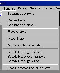 A motion morph involves a sequence of start frames and a sequence of end frames. Morphing is done between successive pairs of frames. Different control point/lines files are required for positions along the sequence because the subjects in successive pairs of frames have moved. (See the definition of Motion Morphing in the Glossary). This switch tells the program that the current project is going to be a motion morph and will require the sequence of start frames, end frames, and point/lines files to be specified.