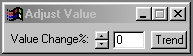 Some of the controls have a Trend button next to them. These trend buttons allow you to set variables over a series of frames. Each frame of any animation may be thought of as a slice of time. The trends allow you to alter some, all, or none of the variables for a particular time slice. Trend graphs have equidistantly spaced vertical lines. For animations under 100 frames in length, each of these lines represents a frame in the animation. The number of frames in any one sequence can be altered using the Sequence controls item from the Timeline pull down menu. Animation lengths of 100 - 999 frames will be represented with a vertical bar being 10 frames, and animation length greater than 1000 frames will have a vertical bar for every 100 frames. Click here to view more information on Trends.