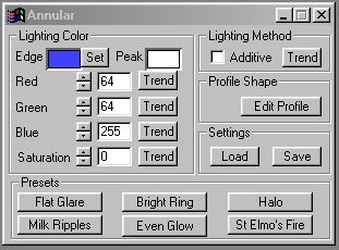 This tool allows you to save the current annular settings into an annular settings file. This file can then be loaded at a later time to reproduce the current annular effect. All of the settings in the annular dialog will be saved into the settings file.