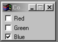 These three check box controls allow you to alter the coloration of the color gel that is applied to the image. Selecting one of the check boxes will cause that color component to be used as part of the color gel calculation. If more than one box is selected, then the color will be a combination of the two color components. It is not allowed to select all three color components, since this will result in an all black image.