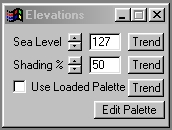 This option, when selected, allows you to change the default elevations palette. This means that instead of remapping the image to the default blue and green palette, you can remap the image to any color spread or range that you like. The palette controls can be accessed by pressing the Edit Palette button in this dialog.