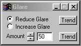 The Amount setting controls the intensity or amount of the Glare reduction or increase. The control ranges from 0 to 100, with the most practical usage range between 45 and 85. The Amount setting is used with both the Reduce and Increase options. With the Reduce option, the Amount value will determine how much of the glare will be reduced. This includes which areas are defined to be glare regions. Increasing this value will result in more and more regions of the image being reduced in glare. The same is true for the Increase Glare setting. Increasing the Amount value will result in more and more areas of the image becoming glared. Very high settings will force large portions of the image to white.