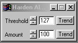 This control alters how the alpha channel is hardened. The setting ranges from 0 (no effect) to 100 (maximum hardening). A setting of 100 will result in an alpha channel which is completely transparent or opaque. WinImages F/x will use the threshold value to determine which areas of the image will be converted to white (opaque) or black (transparent). Decreasing the Amount setting will also decrease this conversion severity. A decreased amount allows for alpha channels that are multiple gray values (transparency levels).