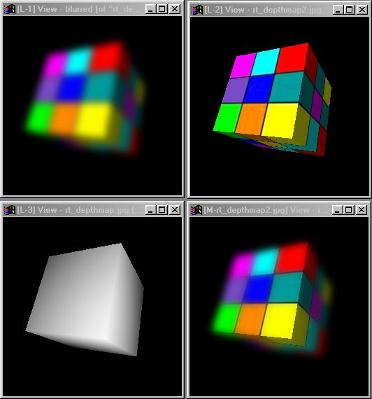 If both MIN and MAX are the same value, then the scene will be analyzed for the minimum and maximum object depth, and the greyscale result will reflect those as the MIN and MAX values. This doesn't work well for animations, because objects that move can change the effective depth of the scene. Example output: ![]() Normally traced object