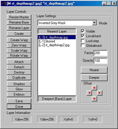 If you specify the explicit "source" command instead of an image file, the currently assigned source image will be used as the bump map. An additional benefit of this approach is that in the timeline, you can use an animation as the source input to the raytrace operator, thereby allowing you to use an animated image as a bump map. Using WinImages F/x's "Save Project" menu item in the File Menu in conjunction with the various types of image maps can very useful, because it saves the settings of all the effects, as well as saving all images that were loaded when you use "Save Project." You can then later use "Load Project" to immediately load all of the components of a ray tracing project, including all image and bump maps. Images that are not loaded at trace time will be automatically loaded, however.
