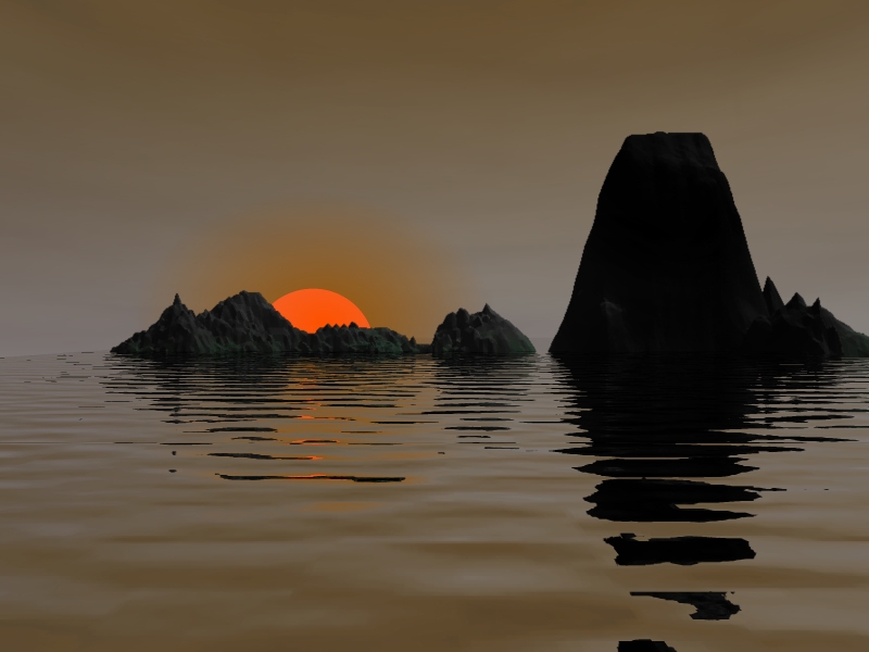 We've provided control of many useful characteristics - reflectivity, refraction, transparency, roughness, and much more. You can "bump map" surfaces for a compelling look when you need an organic effect - waves are a good example of that. You can use image maps to give character to objects, and you can bump map those as well. If you use images that have active alpha channels in them, you'll be able to control the transparency of an object with the image map itself, which can lead to some amazing results.