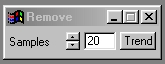 The Samples control is used to specify the number of points that the remove feature will draw color from. The number of samples specified relates directly to the quality of the remove feature. Increasing the samples will also increase the computational time needed to complete the operation. The sample can range between 0 (no effect) to 50 (maximum number of samples). The sample will draw color from the edge of the area select towards a central location to effectively "remove" the object specified by the area selection. This option can be set with the slide gadget, or by entering the value in the provided text entry field.