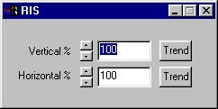 Some of the controls have a Trend button next to them. These trend buttons allow you to set variables over a series of frames. Each frame of any animation may be thought of as a slice of time. The trends allow you to alter some, all, or none of the variables for a particular time slice. Trend graphs have equidistantly spaced vertical lines. For animations under 100 frames in length, each of these lines represents a frame in the animation. The number of frames in any one sequence can be altered using the Sequence controls item from the Timeline pull down menu. Animation lengths of 100 - 999 frames will be represented with a vertical bar being 10 frames, and animation length greater than 1000 frames will have a vertical bar for every 100 frames. Click here to view more information on Trends.