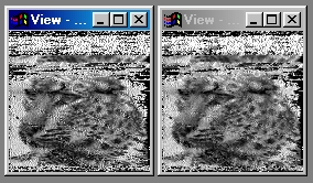 The Severity control allows you to remove pixels or groups of pixels based on its setting. The control ranges from a setting of 1 (lowest severity) to 16 (highest severity). A setting of 1 will result in a remove isolated pixel operation. This will examine all of the pixels in the selected area, and remove any pixels that are not the same as any of its surrounding pixels. Increasing the severity will decrease the requirements for removal, thus more pixels or pixel groups will be removed. Once a pixel is removed, it will be replaced with an average of its surrounding colors. The severity setting is a good method for removing excessive dither in an image. A setting of 16 would act like a severe low pass filter. This means that areas in the selected region would become blurred as pixels or groups of pixels are removed and replaced with a color average. This control is set using the slide gadget, or by entering an appropriate value in the text entry field to the right.