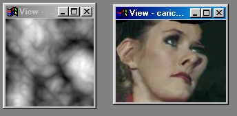 Surface Warping allows you to warp an area in an image view, and warp it based on the information in a specified source image. The action image is warped based on changes in brightness in the source image. You can control the direction of the warp, the amount, and the shading. This effect can be used with text to create a raised or bubbled glass effect, or over an animation sequence to give a pseudo 3-D look to a stream of images. The operation can be carried out on any area in the action image, but is best suited for use with the Entire area selection tool.