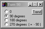 The Turn 90 operation is used to flip an image region or the entire image in 90 degree increments. This tool can be used to rotate any area selection, but it primary strength lies in rotating an entire image. If you need to rotate an area or the entire image by an amount other than these 90 degree increments, you should use the Rotate operation.