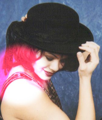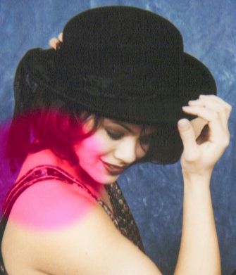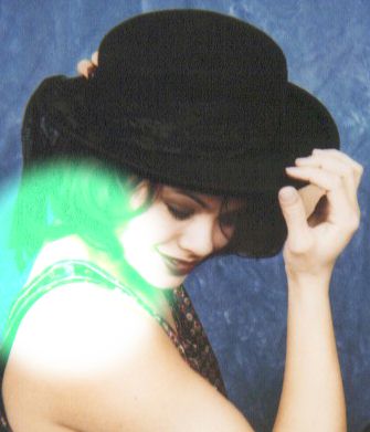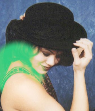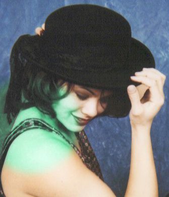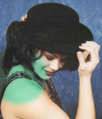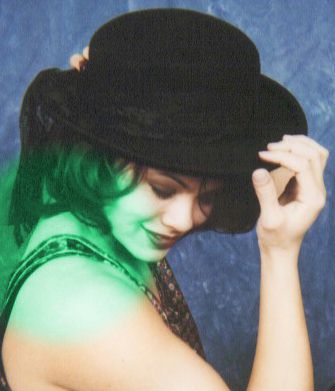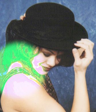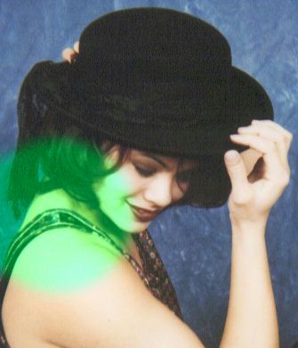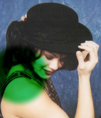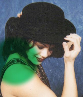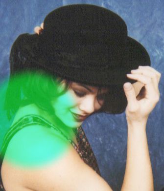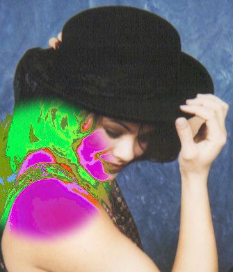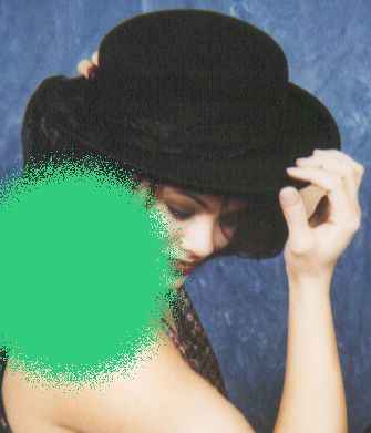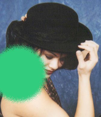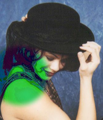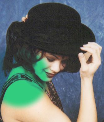 These two images were used to demonstrate the various pixel transfer modes, by using collage/place to transfer the green blob to Stacey's picture. We put the merge in the same place in most images, unless moving it demonstrated something in particular.