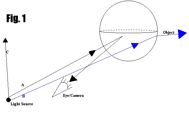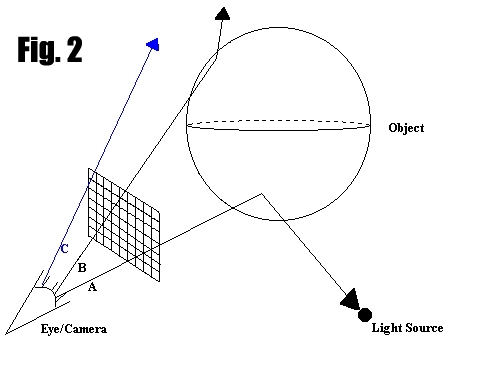 To simplify the computing task, the tracing is reversed, as shown in Fig. 2. This method is known as "Reverse Ray Tracing," and is the method by which most Ray Tracing programs model. WinImages F/x is no exception.