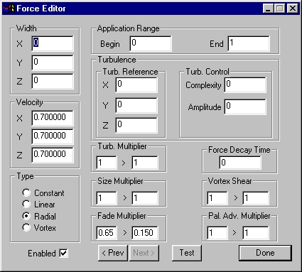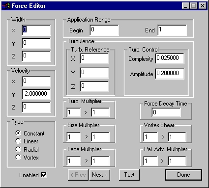 | This provides a constant upwards force with turbulent displacement - smoke doesn't usually rise in a straight column. This force is applied for the entire system lifetime. |