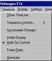 The Inhibit Display mode will keep the Timeline from rendering each image that is loaded during the sequence. This will also prevent the rendering of an image after an application has been applied, or after an Undo. This will generally increase the speed of the sequence generation. We suggest that you always use this control for large Timelines to decrease the time needed for generation, or on any 386 based machine. This control will not prevent the rendering of the filmstrip, but this can be turned off by closing the filmstrip controls.