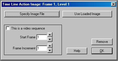 This check box denotes that the file or files you have selected are video sequence. A video sequence is any supported animation format (FLI/FLC, AVI, and FLM). It is possible to specify a non-animation file as a video sequence, but the file specified will only be used the specified number of frames. Real animation files can be placed into the Timeline at any frame number, and with any frame increment (see below for more details). It is suggested that you do not specify non-animation files as video sequences.