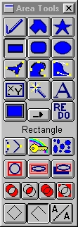 The Area Selection Tool Box contains all of the area selection modes and modifiers for the program. An area select defines where the operation will occur. WinImages F/x area selection method can work in one of two ways: